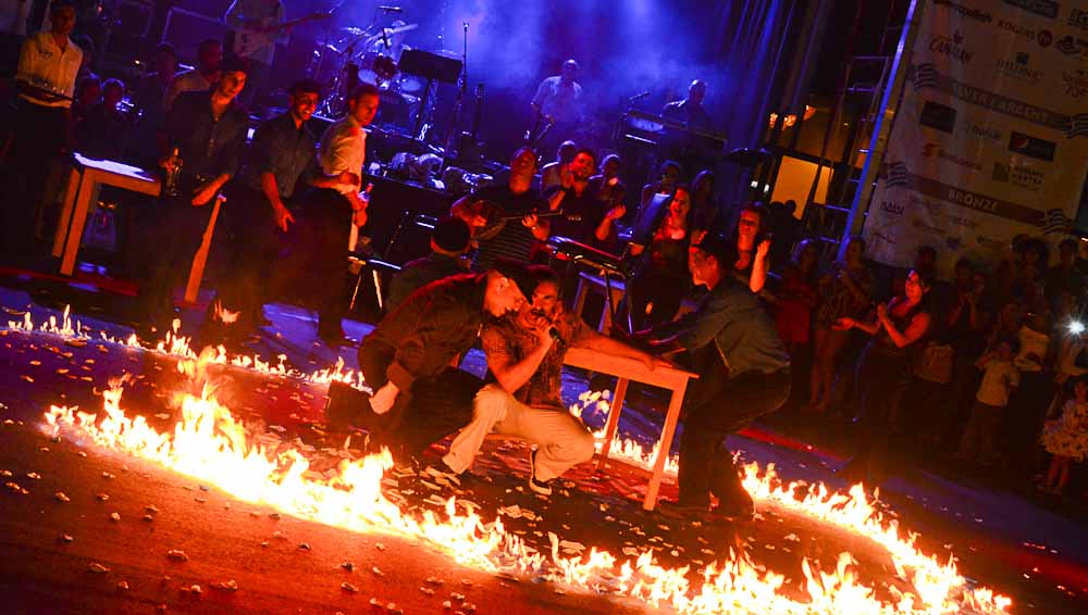| Cooking up a storm at Father Alex's Saganaki Shack. Saganaki is a pan seared cheese appetizer and when it is ready, they light it up and this is the result. |